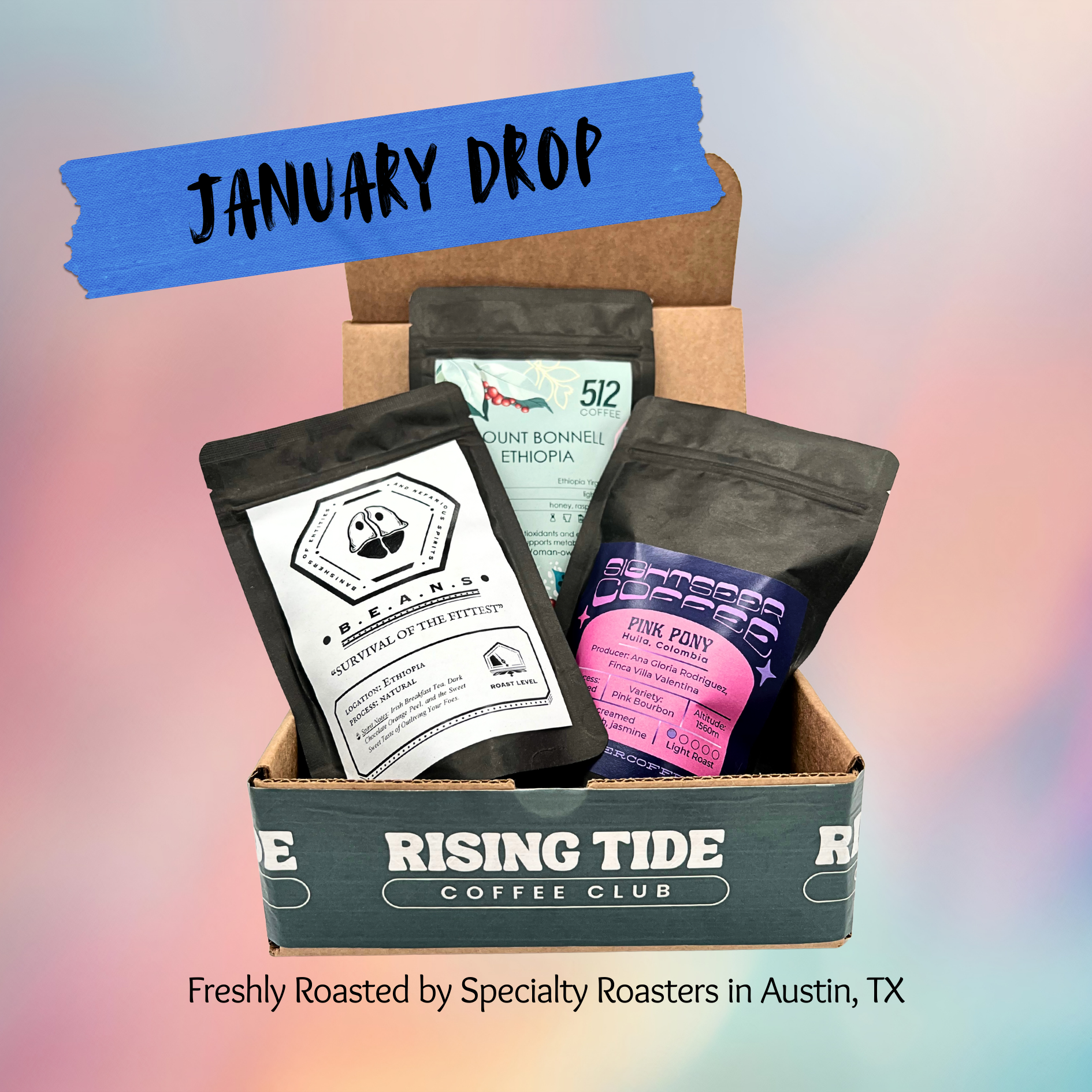 Each month, you'll receive a curated trio of 4oz coffee samples from our Collective of independent roasters. Think of it as your backstage pass to delicious blends, unique single origins, and a variety of flavor profiles—all while supporting local specialty roasters.